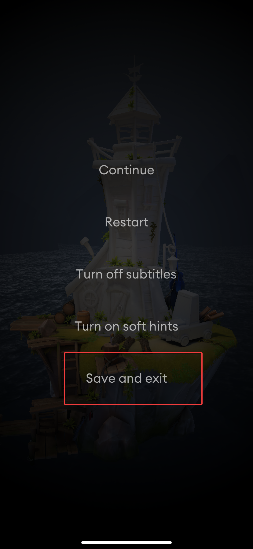 To do that, during the escape completion, tap on the icon with three dots in the upper right corner of the screen and then pick the Save and Exit option. There you go, now your progress won't be lost after leaving the escape. 🙌️